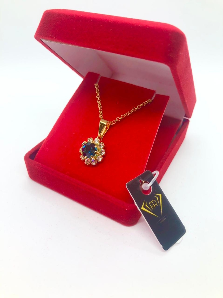 Corrente 45 cm elo português + Pingente com zircônia na cor azul Montana… Trabalhamos com peças folheadas a ouro 18k ,todas nossas peças recebem um banho antialérgico ,com isso proporcionamos a nossos clientes uma peça de altíssima qualidade com ótimo preço.
