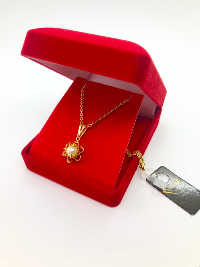 Corrente elo 45 cm + Pingente em forma de flor com pérola.Ref-cl-14